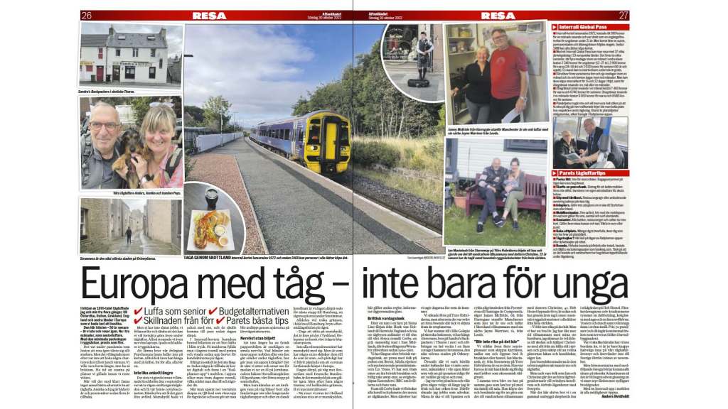 Att ge sig ut på en tre månader lång tågluff och ta med hunden…är det verkligen en klok idé? Vi testade och det gick över förväntan bra. Den här artikeln, publicerad i Aftonbladets söndagsbilaga den 25 december, är bara en i raden av artiklar från vår reportageresa hösten 2022. Mer kommer under 2023, i bland annat Allers (Sveriges äldsta och mest lästa veckotidning), tidningen Kombi, PRO:s Pensionären och Allt om Resor.